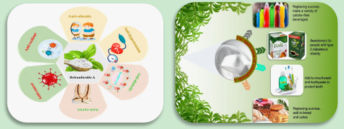 Rebaudioside A is a kind of steviol glycoside, which belongs to tetracyclic diterpenoids (Figure 1). It accounts for about 4% of the dry weight of stevia leaves, and it is the second most abundant steviol glycoside in stevia leaves. Compared with other steviol glycosides, it has pure sweetness, less bitterness, and the highest sweetness (250-450 times that of sucrose). It does not participate in the energy metabolism process of the body after consumption and is stable, resistant to storage, and suitable for various traditional sweeteners. It is an ideal new low-calorie sweetener. In addition, rebaudioside A also has biological activities such as anti-diabetes, hypotension, anti-inflammation, anti-cancer, and anti-caries (Figure 2). Today, high-purity steviol glycoside A has been gradually used in various food and beverage industries (Figure 3), and the domestic rebaudioside A market will be even broader in the future. This article provides a comprehensive overview of rebaudioside A (e.g., physicochemical and biological properties, metabolic kinetics, safety, biosynthetic pathways) as an alternative to traditional high-calorie sweeteners and synthetic sweeteners for reducing dietary sugar intake amount of potential. The latest extraction and purification techniques of Rebaudioside A and the latest applications in the food industry are compared. In addition, the problems existing in the current steviol glycoside industry (i low extraction efficiency and outdated purification methods; ii low output cannot meet market demand; iii single steviol glycoside products and taste) are also given, and corresponding solutions are given (i New extraction technology combined with membrane separation technology; ii enzymatic or biotransformation method to obtain steviol glycosides; iii development of new steviol glycosides or compounding other sweeteners to achieve taste optimization). The above work has been supported by the Natural Science Foundation of China (3207274) Provincial Science and Technology Major Project (BE20207769, CX (21) 2026, CX (20) 3168) and other projects.