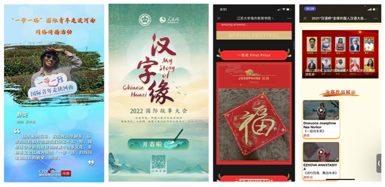 A Chinese speech contest trial was held in Jiangsu University, which upon competing, won 2nd Prize and was selected to represent the school in the provincial level speech competition, where she also came out victorious, and won 1st Prize, and was officially broadcasted in the news. However, Josephine’s enthusiasm didn’t end there, aiming at a much higher achievement which in turn came out successful, participating in the 2021 Chinese Bridge GLOBAL Chinese speech competition and coming out 2nd out of hundreds. Josephine also won excellent prize award out of thousands of entries all over the world in “My story of Chinese Hanzi” GLOBAL Chinese speech competition in 2022 after which she was selected to participate in the 2023 Belt and road Global youth tour to Henan Province, China.