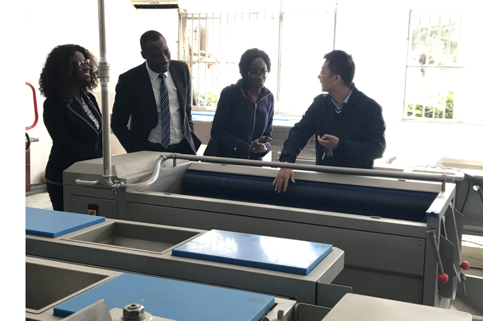 On Friday 15th November 2019, three delegates (Acting Director, International and External Relations, Dean of Faculty of Engineering and IT and Assistant Director, Human Resources) from the University of Namibia visited School of Food and Biological Engineering, Jiangsu University. Prof. Zhou Cunshan, director of department of Food Science and Engineering showed foreign guests around the Vegetable dehydration technology integration base of Ministry of Agriculture and introduced fruit and vegetable dehydration production line, mainly include: cleaning, dry blanching, 3D cutting, catalytic infrared drying, sorting, color selection, electro thermal steam sterilization, powder packaging and intelligence storage.