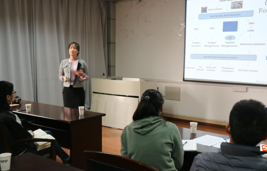 On Apr.16, Dr. Siyun Wang from University of British Columbia visited Jiangsu University. Dr. Siyun Wang delivered an academic lecture named Syst-Omics in Food Safety. Prof. Huang Xingyi, Vice-Dean of School of Food and Biological Engineering, hosted the lecture and introduced Dr. Wang. Some faculty members and Foreign –Sino students of the school attended the lecture.