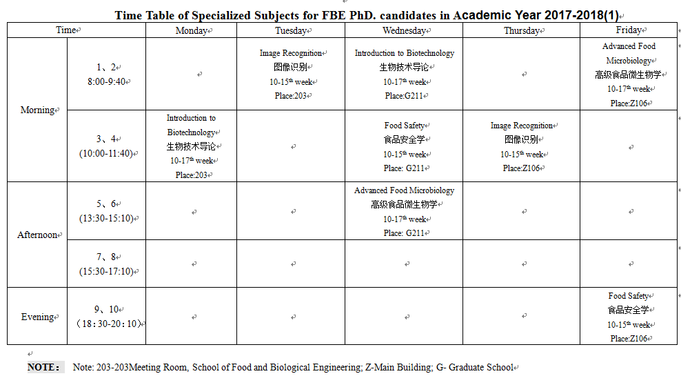 Time Table of Specialized Subjects for FBE PhD. candidates in Academic Year 2017-2018(1)