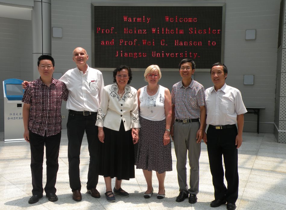 On Jun. 12, Heinz Wilhelm Siesler from University of Duisburg-Essen Visited Jiangsu University. Prof. Heinz Wilhelm Siesler was appointed part-time professor of Jiangsu University. At the ceremony, Chen Long, the vice President, granted prof. Heinz Wilhelm Siesler a letter of appointment, pinned a Jiangsu University emblem for him. After the ceremony, prof. Siesler made a lecture entitled The Near-InFrared Region, A Plea for an Under&#118alued Wavelength Range of Vibrational Spectroscopy.