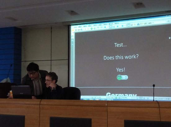 At 14:00 on April 17, 2014, The overseas exchange were successfully held in the conference center of Jiangsu University. He-zhe Qi from Overseas Education College gave a wonderful report. 55 freshman of Food Safety and 6 foreign students participated.At the meeting, He-zhe Qi explained that the school's policy of studying abroad and national environment, which inspired everyone enthusiasm of overseas studying. Further on six overseas students from Germany, Korea, India, North Africa showed their customs and college education one by one, which broadened audience`s horizon. Students of Overseas Education College and Chinese students had a heated exchange. Each one had a further knowledge about the exchange of overseas journey and experience, combine education and fun .The exchange lasts three hours. It helps students learn that under the support of our school ,the dream of overseas studying would be realized.