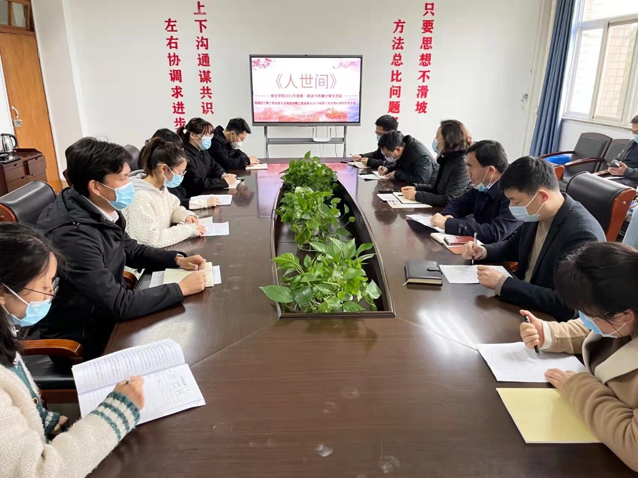 党委举办2022年第一期读书思廉分享交流会,本期交流会的主题是“沉浮人世间,长扬真善美——读《人世间》”。院党委书记万由令,食品物理加工研究院教工党支部、生物技术教工党支部和2019级硕士生党支部的党员,2021级本科生学生代表参加了此次读书会,读书会由食品物理加工研究院教工党支部书记任晓锋主持。
