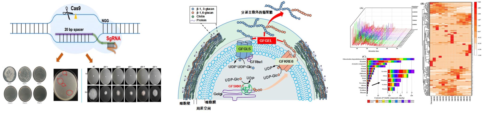 (6)CRISPR/Cas9和RNAi技术解析食(药)用真菌功能成分合成途径以及脂肪酶催化机制及其在功能油脂合成中的应用。
