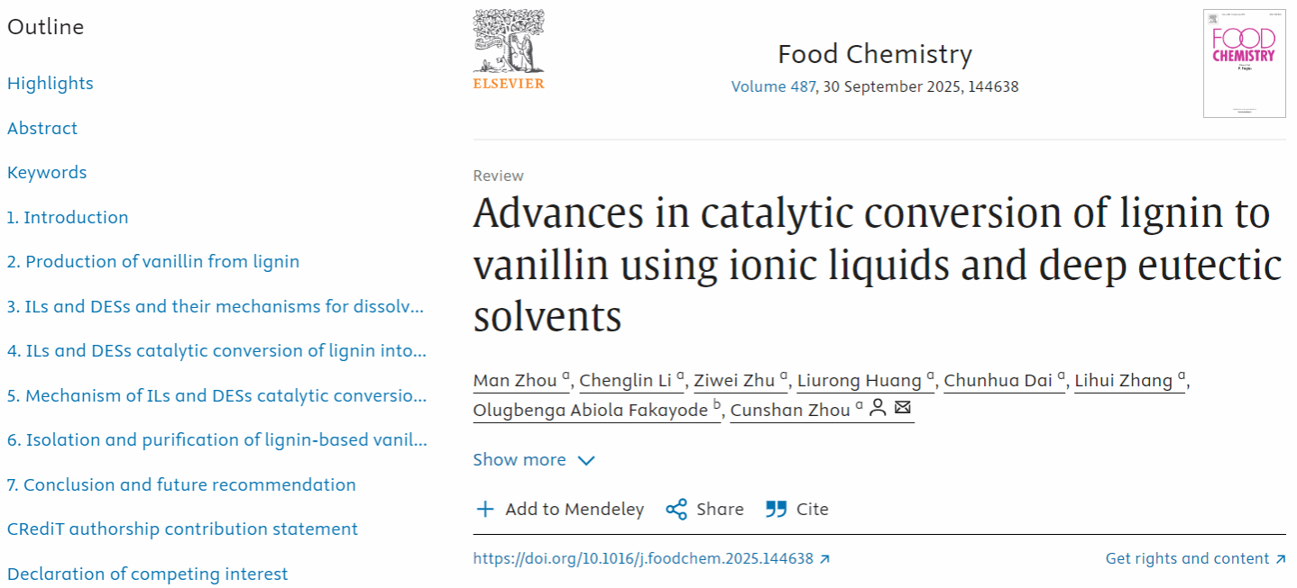 周存山教授团队在国际Top期刊Food Chemistry上发表主题为“Advances in catalytic conversion of lignin to vanillin using ionic liquids and deep eutectic solvents”(2025, 487, 144638)的综述文章。澳门新葡京官网 | 2025线上开户直达、真钱百家乐、捕鱼游戏、官方授权