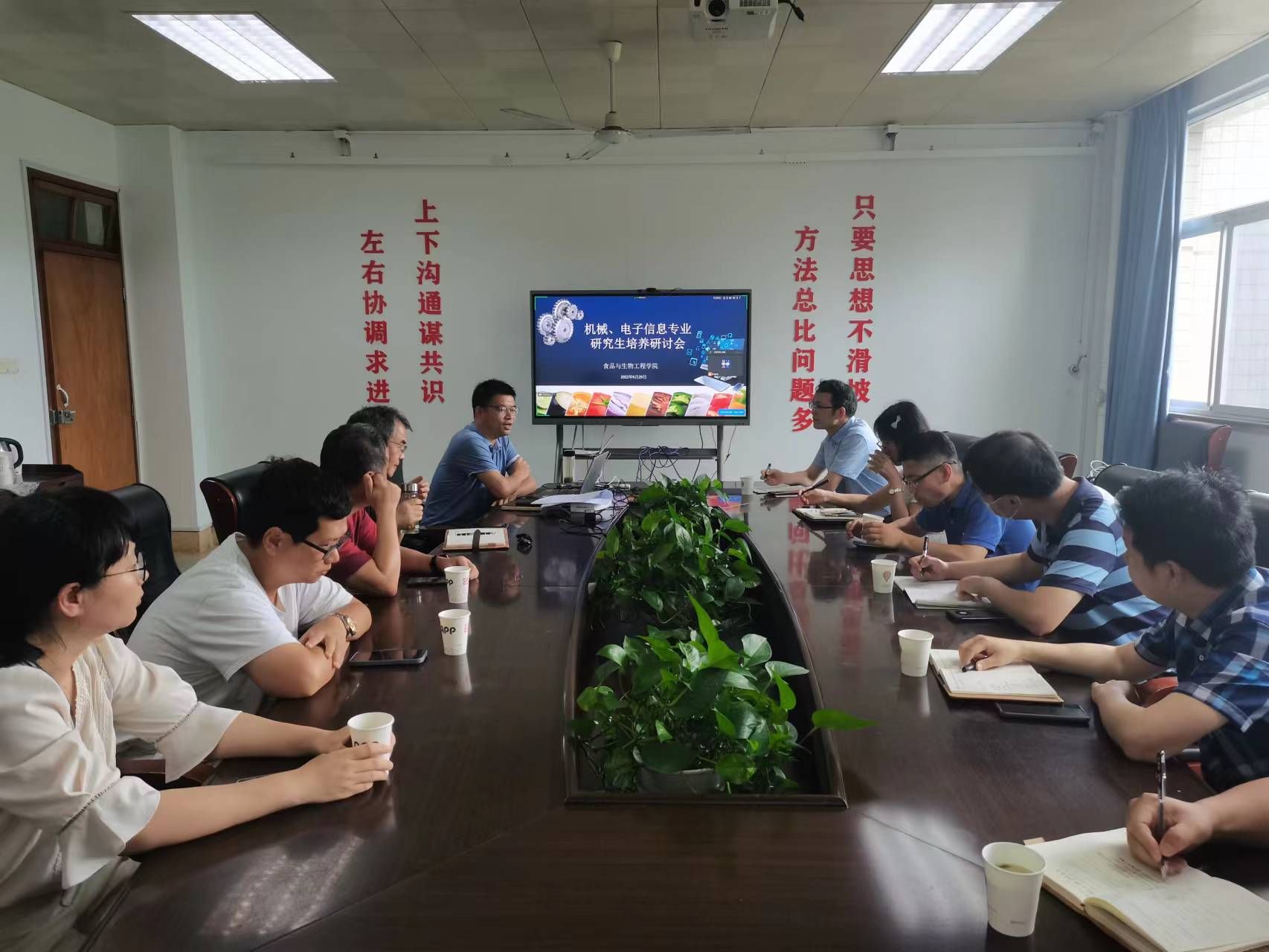 副院长张红印主持会议,陈斌教授、马海乐教授、蔡健荣教授做研究生培养经验分享报告,学院二十余名机械和电子信息专业导师现场参会,另有十余名导师通过腾讯会议参与学习。
