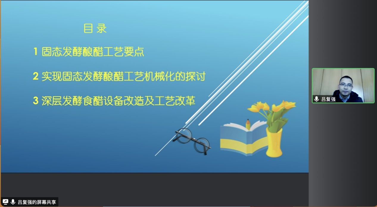 举办的“产业教授进校园活动”顺利举行,本次会议邀请江苏省产业教授、江苏恒顺醋业股份有限公司企业管理部部长吕复强做 “食醋生产工艺及发酵反应器研究进展”的专题报告,报告通过腾讯会议直播。食品物理加工研究院常务副院长何荣海教授主持会议,澳门新葡京官网