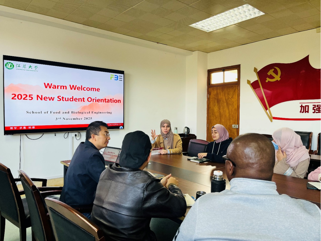 周院长首先代表学院向新生们表示热烈欢迎,并介绍了学院在学科建设、科研平台、师资力量以及国际合作等方面的基本情况,鼓励新生们珍惜在江苏大学的学习机会,积极参与学术与文化活动,提升专业素养与综合能力。随后,学院副教授HafidaWahia为新生们详细介绍了未来几年的学习与科研规划,内容涵盖课程学习安排、科研训练方向以及在校生活建议等方面,帮助大家更好地规划学业与生活目标。