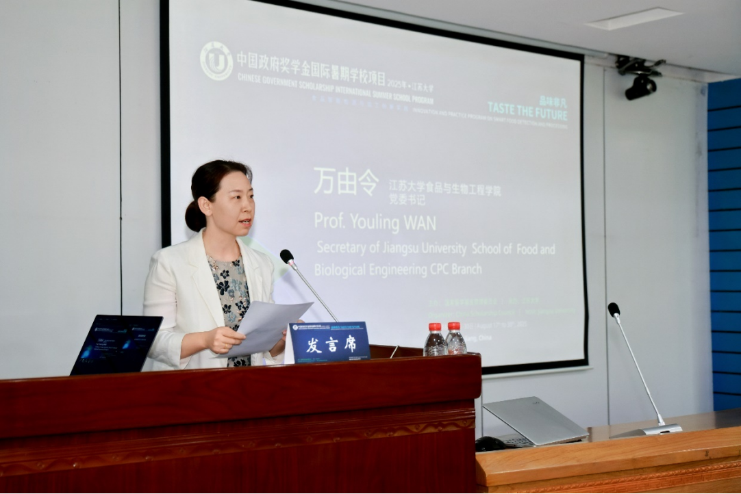 万由令在致辞中向顺利完成学习任务的学员们表示热烈祝贺,并对国家留学基金管理委员会的支持、学员们的积极参与以及学校各部门的辛勤付出致以诚挚感谢。她指出,本次暑期学校是江苏大学深化国际交流、促进文明互鉴的重要实践。两周以来,学员们通过学术研讨企业参访文化体验相结合的形式,深入了解食品科学与生物工程领域的前沿发展,深度感受中国现代科技与传统文化交融的独特魅力。在课程中,学员们参观了江苏大学先进的多肽生产线和啤酒酿造线,走进恒顺醋业、今世缘集团、江苏707天然制药有限公司等知名企业;在文化体验环节,《红楼梦》主题讲座、茶文化研习、西津渡历史街区参访让他们更加深刻地理解中华文化底蕴。