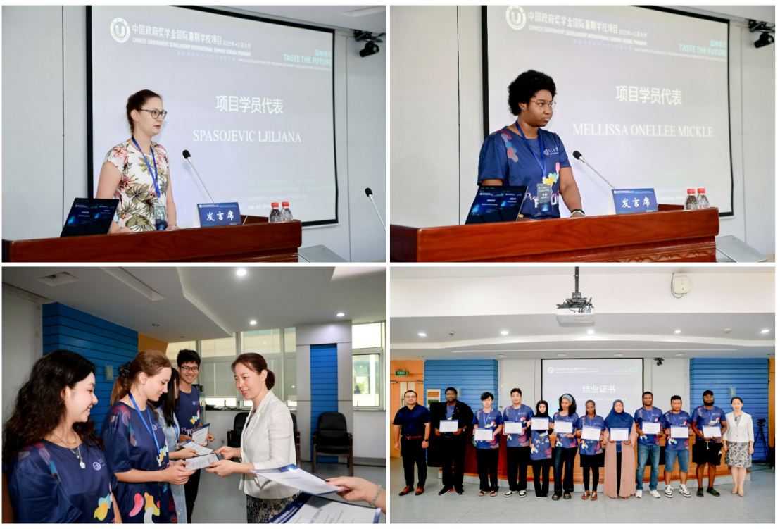 塞尔维亚籍学员 Spasojevic Ljiljana 在发言中回顾了在恒顺醋业、今世缘集团等企业的参访经历,表示中国传统酿造工艺与现代智能生产的深度融合给她带来巨大启发,认为这种模式对推动其国家食品产业创新具有重要借鉴意义。她强调,本次暑期学校不仅是学术之旅,更是文化交流与友谊之旅,为各国青年搭建了宝贵的平台。来自圭亚那的学员 Mellissa Onellee Mickle 则分享了她在智能食品检测与加工方面的收获。她特别提到,参观多肽实验室和观察啤酒酿造全流程,使她深刻感受到理论与实践相结合的重要性;学生自主组装的巧克力3D打印机更令她惊叹江苏大学学生的创新能力。作为药学专业学生,她对江苏大学在中药与现代制药融合创新方面的探索印象深刻,并表示将致力于科技创新与国际合作。