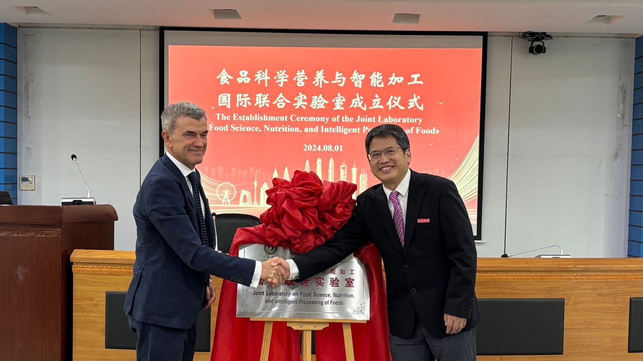 2024年8月1日上午,食品科学营养与智能加工国际联合实验室在我校揭牌成立,校党委常委、副校长邹小波出席活动。会议由校国际处处长崔勇主持,澳门新葡京官网 教师、中外学生80余人参加了报告会。