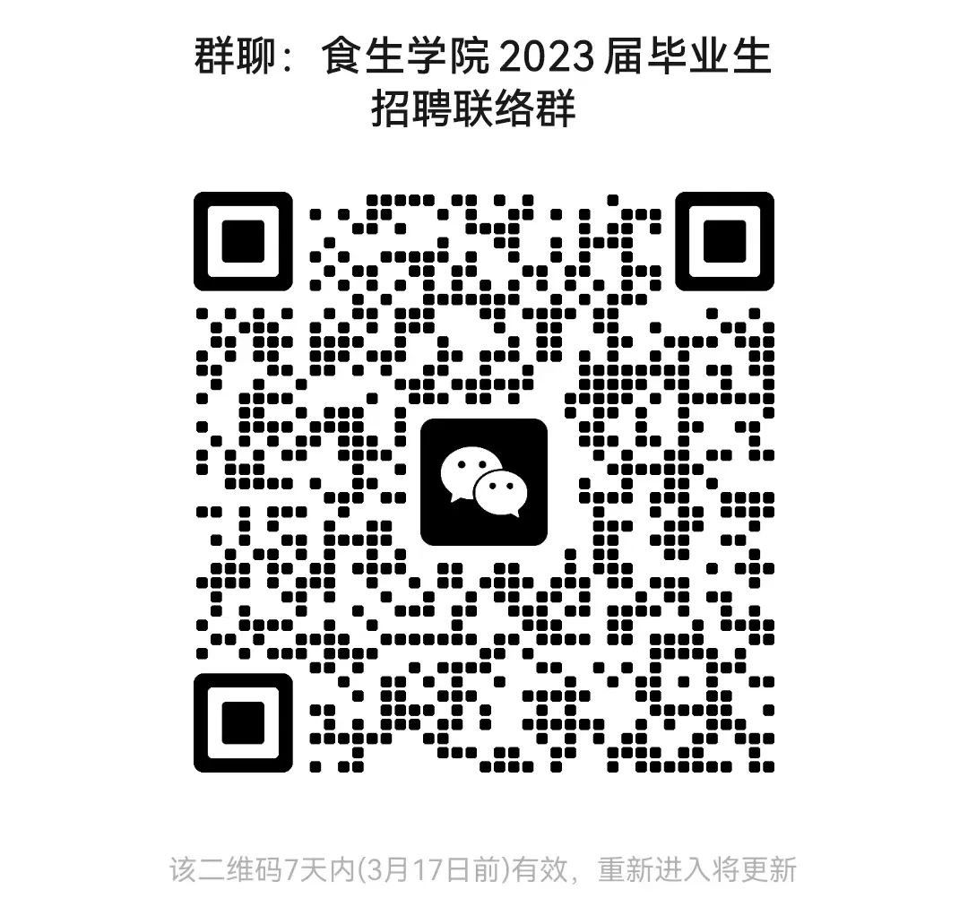 扫码加入学院2023届毕业生招聘联络群: