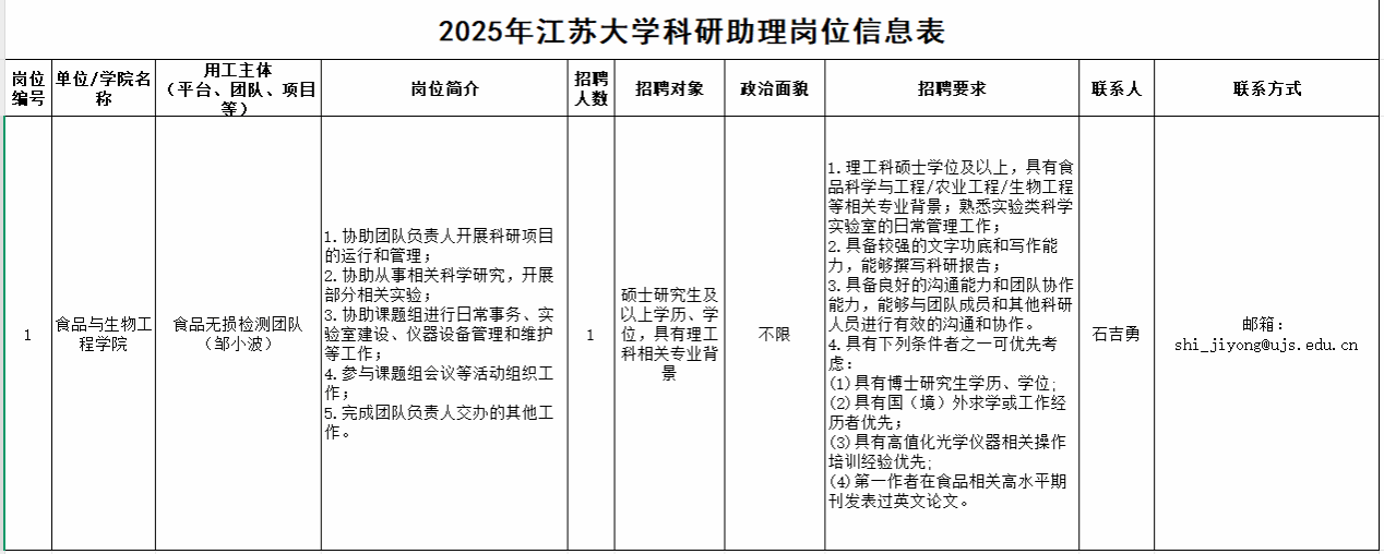 【科研助理岗位招聘】江苏大学澳门新葡京官网 科研助理招聘